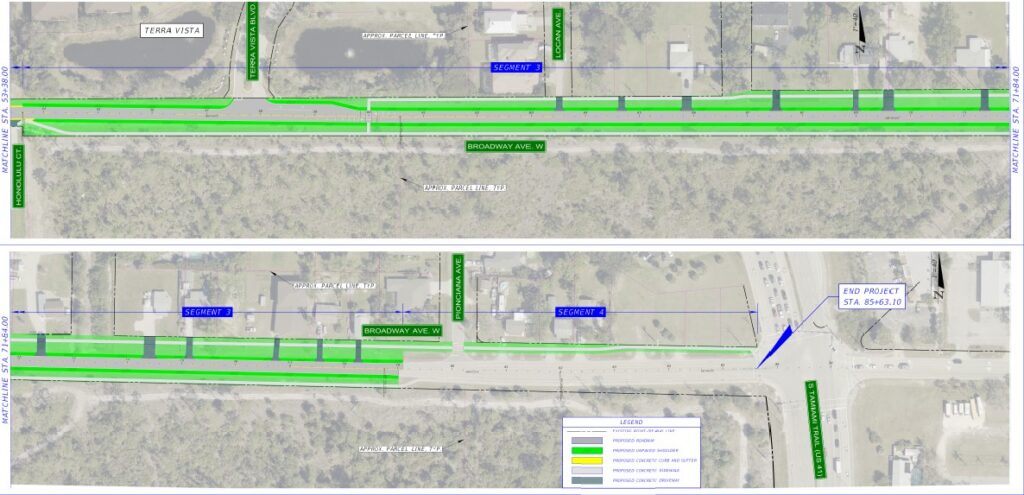 The Broadway Avenue West Safety and Drainage Project will focus on improving roadway safety and drainage conditions west of U.S. 41. The project will evaluate roadway conditions, pedestrian access, drainage systems, and overall safety to develop long-term improvements that better serve residents, businesses, and visitors.